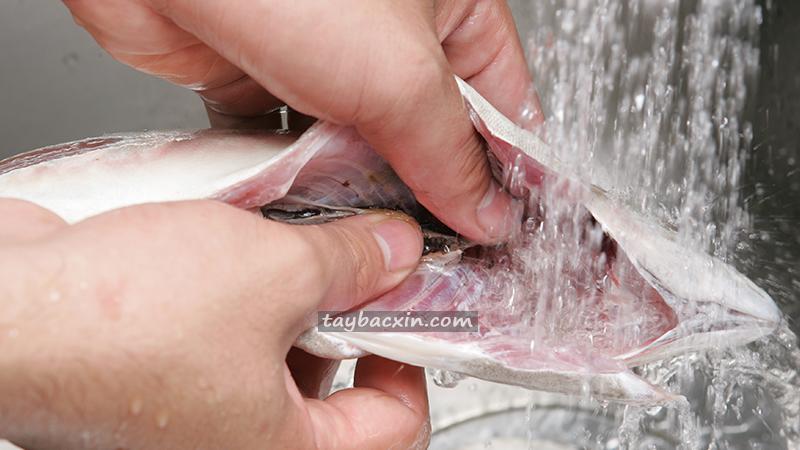 Phần máu đọng ở xương sống và lớp màng đen bên trong bụng cá nếu không làm sạch kỹ sẽ làm mùi tanh nặng hơn.